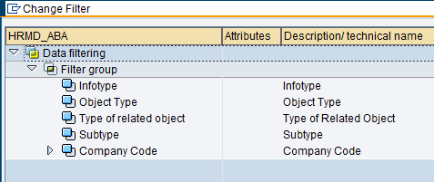 After you save the new entry, you are ready to test the new filters. When you open ALE distribution model transaction BD64 and go into edit mode, select message type HRMD_ABA. Double- click on the filter field to bring up a new pop-up window that allows you to specify filter conditions. If you create a new filter group using the Create New Filter Group button, you should now see that the Company Code is among the available filters (Figure 10).