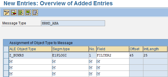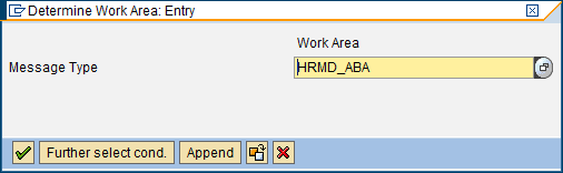 Finally, assign your new filter to the employee’s message type. This operation is performed by running transaction BD59 (Allocation object type -> IDoc type). First, you need to determine the Work Area by entering HRMD_ABA in the Message Type field (Figure 8).