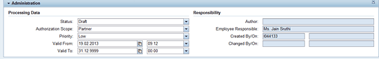 In addition, the Adminstration tab allows you to assign a status, authorization scope, priority, and validity dates, as shown in