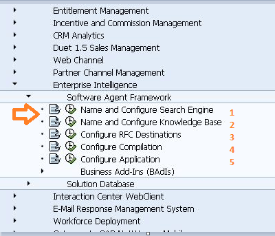 To search with TREX, the settings you need to make are found by following menu path Customer Relationship Management > Enterprise Intelligence > Software Agent Framework (