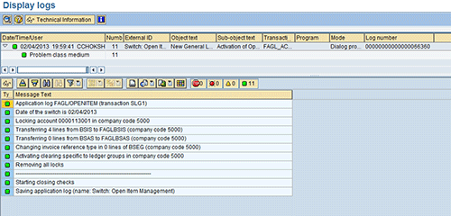 When I check the GL account master data, the indicator Clearing specific to Ledger Group is not turned on. If you face a similar problem, implement corrections made in SAP Note 1603673 and then execute this program in foreground mode. After implementing the solution from SAP Note 1603673, I execute this program in foreground mode. The program then runs successfully, and the warning message does not appear anymore. The only difference is the execution mode. The log of FAGL_ACTIVATE_OP foreground mode execution is shown in Figure 14. The message Canceling the activation of open item management specific to ledger grps no longer appears.