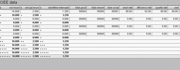 The data appearing on the Qty/activities tab and Confirmed dates tab (Figure 4) enables you to calculate OEE. Normally when there are several operations, you would select the bottleneck operation. The bottleneck operation constrains the maximum throughput of the production when there are no other constraints or speed losses at any other operation. The other operations typically would not run at full speed and would not be measured in detail until they became a bottleneck (i.e., the operation that limits the overall speed of the process).