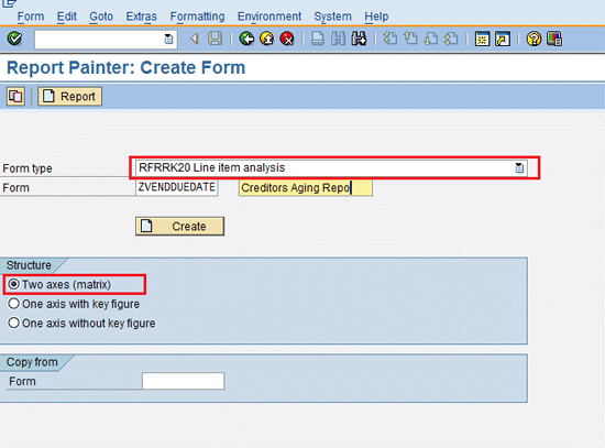 In the following example, I show you how you can create the form required for due date analysis of vendors. If you want to create due date analysis reports for customers, you follow the same steps. Only the transaction codes differ, as specified in Table 1.