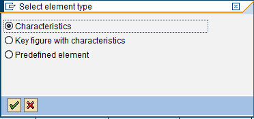 Select the Key figure with characteristics option and click the confirm (enter) icon. A number of characteristics are available on the Available characteristics context menu on the right side. Drag the required fields to the Selected characteristics context menu on the left side by clicking this