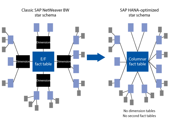 New structure of an SAP HANA-optimized InfoCube