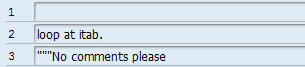 The IN TABLE addition in the REPLACE statement ensures that the replacement is done for all lines of the internal table. Finally, use a DELETE statement to remove all lines that are blank. The blank lines are the result of the replacement carried out on lines beginning with an *.