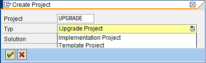 To create your upgrade project, run transaction SOLAR_PROJECT_ADMIN in SAP Solution Manager. Then either click the Create icon or press the F5 key. As shown in Figure 1, enter the name of your upgrade project, select Upgrade Project as the type of project, and then click the execute icon.