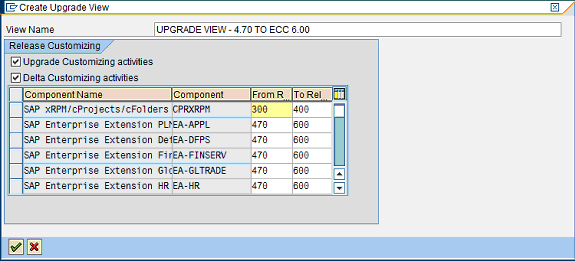 If this is the first time you have created the IMG project, you might automatically be prompted to create an upgrade view. If so, provide a View Name (e.g., Upgrade View – 4.70 TO ECC 6.00) and select both Upgrade Customizing activities and Delta Customizing activities (Figure A). If you are not prompted to create a project IMG view, you need to manually create one by selecting the Create button on the IMG Projects tab.