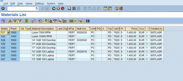 Use transaction MM60 to see the materials assigned to material groups 0020010 to 0020030 (Figure 11). Once the assessment is posted, the CO-PA line item report shows postings to the material group, but there are no postings at the product level. You can run this report through transaction KE24 (Figure 12). Select the required period (e.g., 04, 2010) and record type D. You can’t analyze overheads at the product level because there are no postings for the characteristic Product.