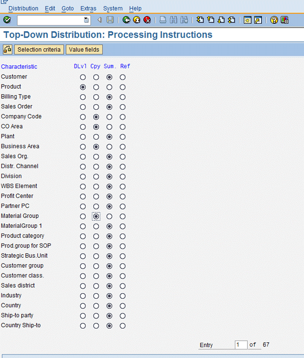 - Top-down distribution can lead to large data volumes, particularly when distribution involves a number of characteristics and value fields involved, so online processing may hamper system performance. However, the background processing option can take care of this issue.