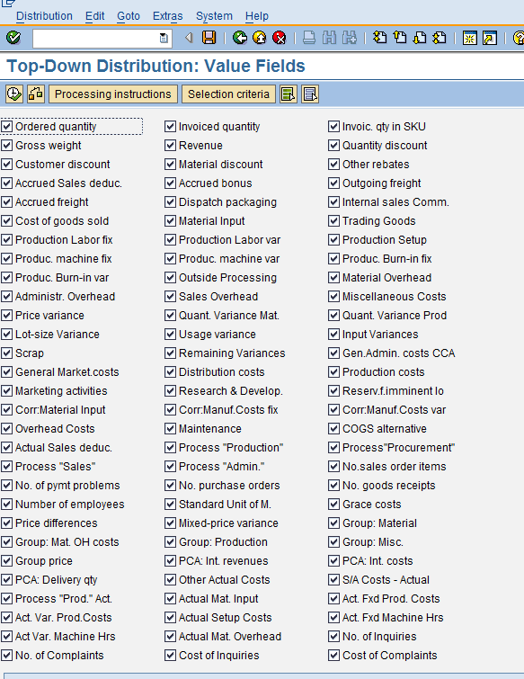 - The reference base for distribution can only be the value fields available in the operating concern of CO-PA