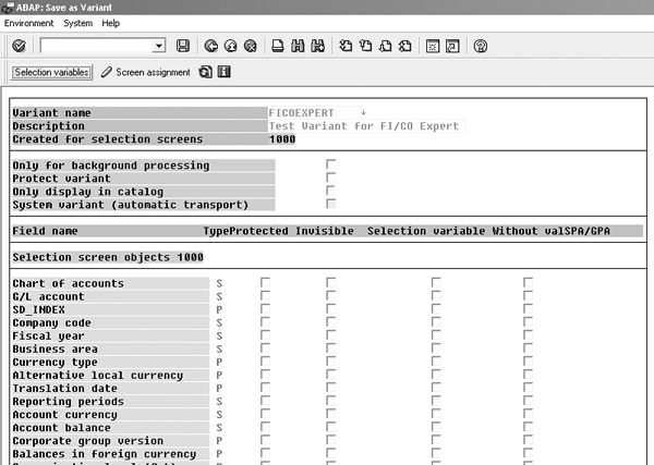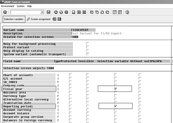 When you execute the report with variant FICOEXPERT, the program derives the field values from the TVARV variable and replaces the field value for the period with 11 and the fiscal year with 2004. The end result is the same. However, the biggest advantage is that in the next fiscal period, you just change one value within the TVARV table (change the value of S-CURRENT-REPORT-PERIOD to 12). It will be effective in all the reports that are used with this variable.