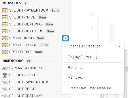 On the left side of Figure 9 notice that several columns are shown as measures. By default, all numeric columns are being added to the measures with the default aggregation function SUM. When you want to remove some of the measures that were generated or you would like to change the aggregation function (for example, instead of aggregating by sum, you prefer to aggregate the data using an average function), right-click on each measure you want to change. This opens the options menu that you can use to make your changes (Figure 10).