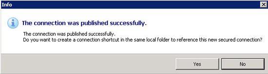 18. Now you are asked whether you wish to create a shortcut for the connection (Figure 15). Click the Yes button, as the shortcut is needed for the next steps.