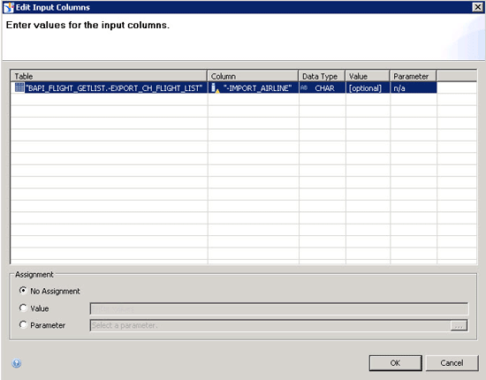 10. In addition, you can select the Map Table Parameters into Input Columns check box to map the input parameters of an ABAP function into input columns for the table.