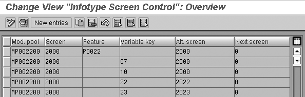 Simply use the IMG (transaction SPRO then menu path Personnel Management>Personnel Administration>Customizing User Interfaces>Change Screen Modifications) or transaction SM31 to change the Alternative screen field of entry Mod. pool = MP002200, Screen = 2000, Variable key = 10, from 2000 to 2022 in table T588M. The Alternate screen value should be the same (2022) as the table entry in Figure 3, which shows Variable key = 22 for Japan. To make the change, double-click on this entry, change 2000 to 2022 and configure the individual 2022 screen fields as shown in Figure 4.