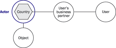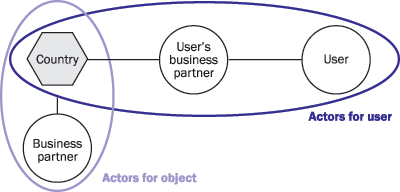 - Users are allowed to view, modify, and delete business partners in their countries. A user has an address containing a country. Business partners also have an address containing a country, so the actor in this rule is the country.