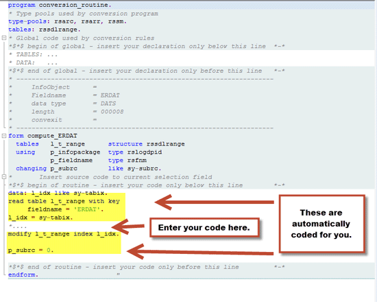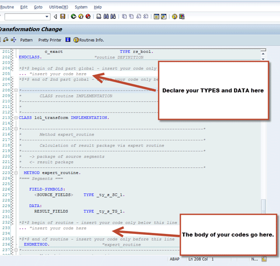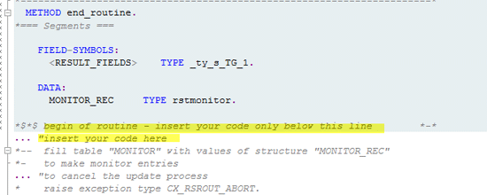 Step 3. Developers should place the body of the ABAP code under the begin of routine section (Figure 4).