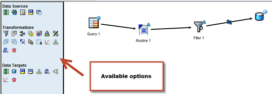 The following example shows how to transform and change data coming from a BEx report and then save it to a DSO. Here the report is the source. The result of the report goes through ABAP routing and you filter the data and finally save it into a DSO. Figure 23 shows the various options you have.