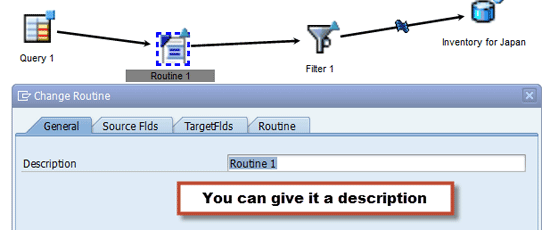 Once you select the query from the Data Sources options and the ABAP routine from the Transformations options, right-click Routine 1 and then click the Properties line (not shown).