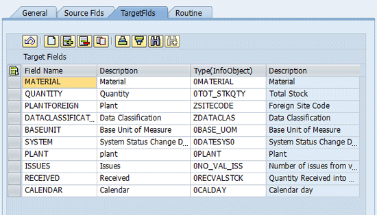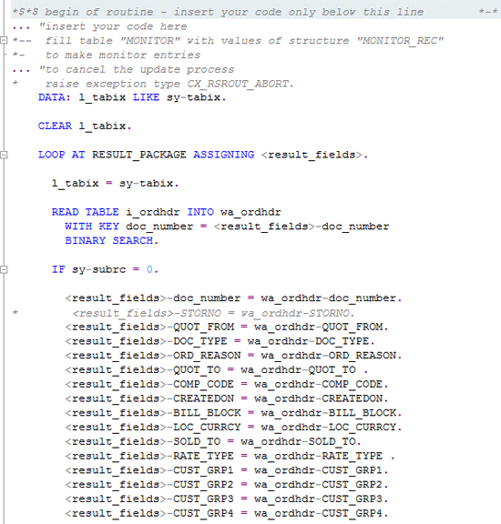 To continue my example, I now populate fields from the internal table I populated in the start routine, as shown in Figure 7.