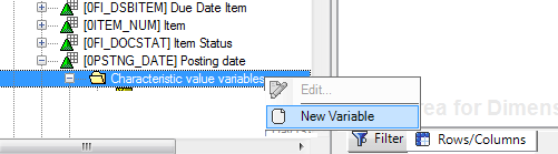 In the Query Designer, locate the Posting Date and right-click the option Characteristic value variables. Then click the New Variable button (Figure 29).