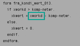 represents the costs. The difference is assigned to variable xkwert, which is assigned to routine number