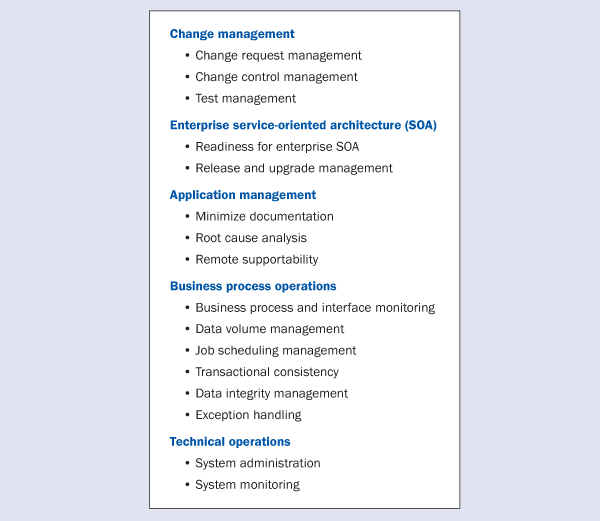 Regardless of the complexity of your SAP solution and sophistication of your support organization, you are likely to see some level of benefits using the Run SAP methodology, Grotelueschen says. “One reason companies see immediate value is because Run SAP is challenging them to ask questions that they probably haven’t asked before,” she says. Questions and procedures surrounding SAP end-to-end solution operations standards help companies implement continuous process improvements, keeping them up to date on current tools and processes (Figure 1).