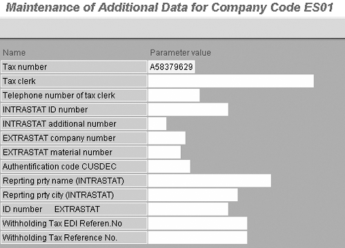 - When you customize the company code data with transaction OBY6, don’t forget to go to the screen for additional data (Figure 2). Depending on the country, you may have to fill in additional data used for Intrastat reports. Among other items, the company Intrastat code has to be entered on this screen.