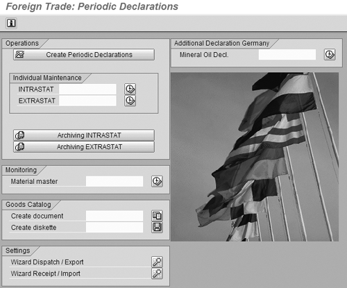 All Intrastat documents for all countries can be produced using transaction code ENGR. SAP calls it the cockpit for periodic declarations, because from this transaction you can do not only Intrastat reporting (import and export), but also other declarations such as Extrastat and the North American Free Trade Agreement (NAFTA). However, via the cockpit you cannot include intercompany purchase orders. You have to do this in a separate step, using transaction code VI98.
