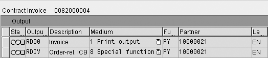 External customer billing header output contains output type RDIV