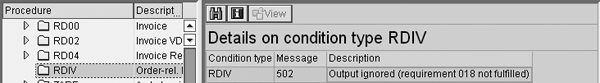 Output determination analysis screen shows why an RDIV condition type was not selected