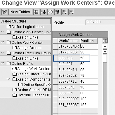 The SALESPRO Navigation Bar Profile SLS- PRO determines the order of the work centers
