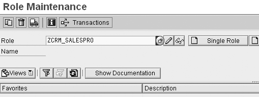 Figure 4 shows the initial screen for the creation of a new role ZCRM_SALESPRO. Note that a single PFCG profile can only be assigned to one Business Role. I have created a new PFCG profile here because I couldn’t use the PFCG profile already assigned to the Business Role I am copying.