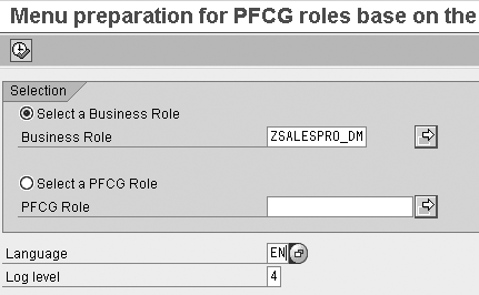 Step 4. Generate your PFCG profile. As a part of the SAP CRM 2007 release, a new program gathers all the authorization objects required to meet the functionality provided in a Business Role. To use this program, go to transaction SE38 and execute program CRMD_UI_ROLE_PREPARE.