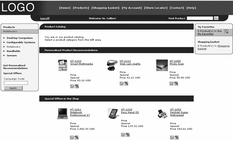 B2C Web shop that showcases campaign code support with product recommendations click here to view a larger version of this image
