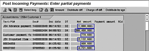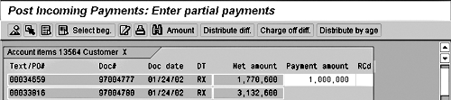 After entering the initial payment data, you are taken to the open item selection screen (Figure 2). Choose Goto>Partial pmnt screen.