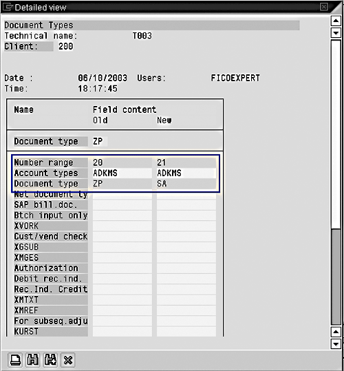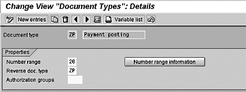 In this example, I want to change the number range assignment and reversing document type for document type ZP in table T003. (See Figures 4 and 5.)