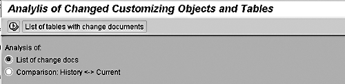 To see the contents of the table at a specific point in time or to compare the current contents against a prior point in time, select the Comparison: History <-> Current button on the initial screen of transaction code SCU3/OY18.