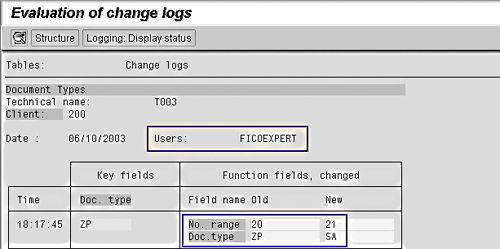 SAP has turned on table logging at the table level for most standard configuration tables, but not all. In R/3, change logging is always on for master data—customer, vendor, and G/L accounts. Figure 1 is an example of master data change logging. It is on for many configuration tables, but not all. Most people assume table logging is on for all the Txxxx series of tables, but only 2,500 out of 6,000 tables in the range T000 to T899 have it switched on.